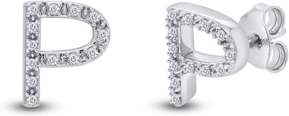 Jewelry has the power to be this one little thing that can make you feel Unique, You're going to love this Fabulous 1/10 Carat Round White Natural Diamond Alphabet Initial Letter A-Z Diamond Stud Earrings In 18ct White Gold Over Sterling Silver (0.1 Cttw). Absolutely a great gift to express your love for your mother, friend, fiancee, wife, valentine, family or just a friend,etc. Great gifts on Mother 's Day, Wedding, Anniversary day, Valentine's Day or Christmas Day
