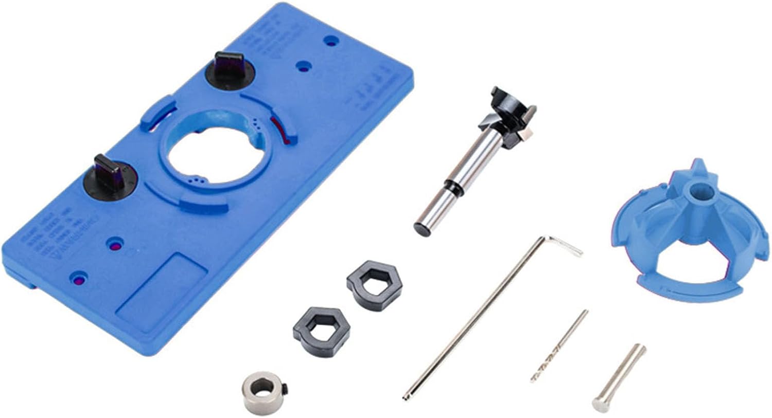 35mm Concealed Hinge Jigs Hinge Drilling Tool Set Suitable Door Hinges Tool For Cabinet Face Frame Cabinet CupboardFeatures: Enhances your woodworking with our Hinge Hole Jigs, featuring a 35mm Drill Bits, suitable for hinge installations on cabinet doors.Crafted from technical ABS, this yellow hinge drilling Jigs ensures accurate hinge placement every time, eliminating the need for manual marking.Suitable for enthusiasts and professional alike, this tool simplifies process of drilling hinge holes, making it accessible to users of all skill levels.Whether you're refurbishing kitchen cabinets or creating furniture, this Hinge Hole Jigs is addition to your woodworking toolkit.The set includes a main frame, rod, drill Bits, 35mm cutter, stopper, and accessories, ensuring you have everything needed for efficient and precise hinge installation.Specifications: Component:ABSColor:Blue/Yellow/RednessSize:Approx.228x96mm/8.97x3.77inchPackage Includes: 1 Set Hinge Drilling JigsNote: 1.Please allow 1-2cm errors due to manual measurement, making sure that you not mind before order. 2.Due to the differences between different monitors, the picture may not reflect the actual of the item.