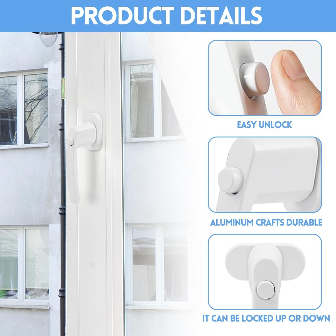 • Lockable - For more safety at home and on the go: This window handle with push button is lockable and is therefore ideal as an additional security lock or theft protection. An uncomplicated way to secure windows and doors indoors.