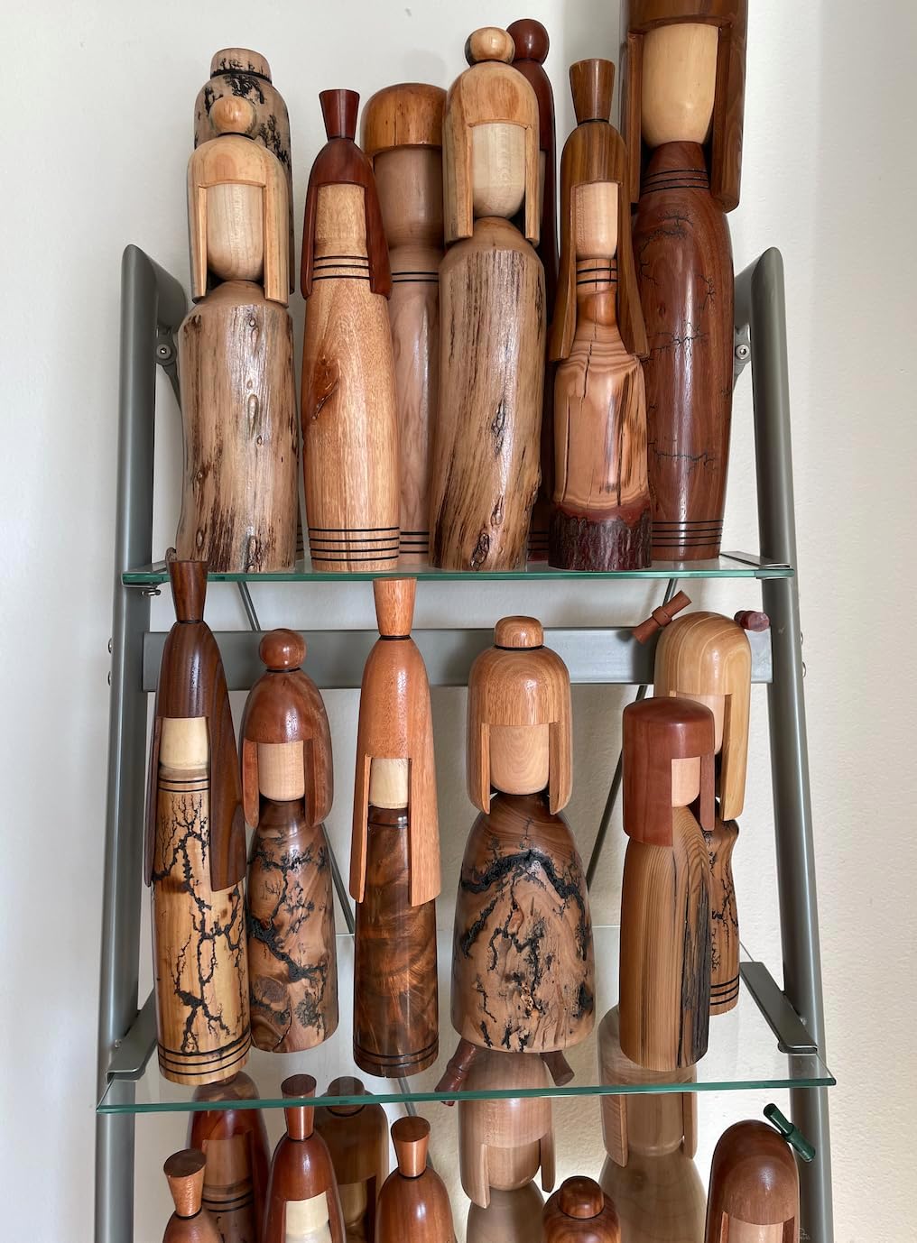 This charming handmade wooden doll brings rustic artistry to your dollhouse collection. Standing at 6 inches tall, this unique miniature figurine showcases exceptional craftsmanship with its natural wood construction that beautifully incorporates the organic bark texture and grain patterns. The piece features a turned wooden body with smooth, polished sections contrasting against preserved natural bark elements, creating a distinctive folk art aesthetic. Each doll is individually handcrafted, making every piece truly one-of-a-kind with its own character and wood markings. The figurine displays skilled woodworking techniques with its rounded base, detailed torso, and carefully shaped head. Perfect for scale dollhouse displays, this decorative wooden doll adds a touch of natural warmth and artisanal charm to any miniature room setting. The approximately 6-inch height makes it an ideal accent piece for collectors who appreciate handcrafted wooden miniatures and folk art styling. This dollhouse accessory appeals to enthusiasts aged 14 years and up who value unique, artisan-made decorative pieces for their miniature collections.