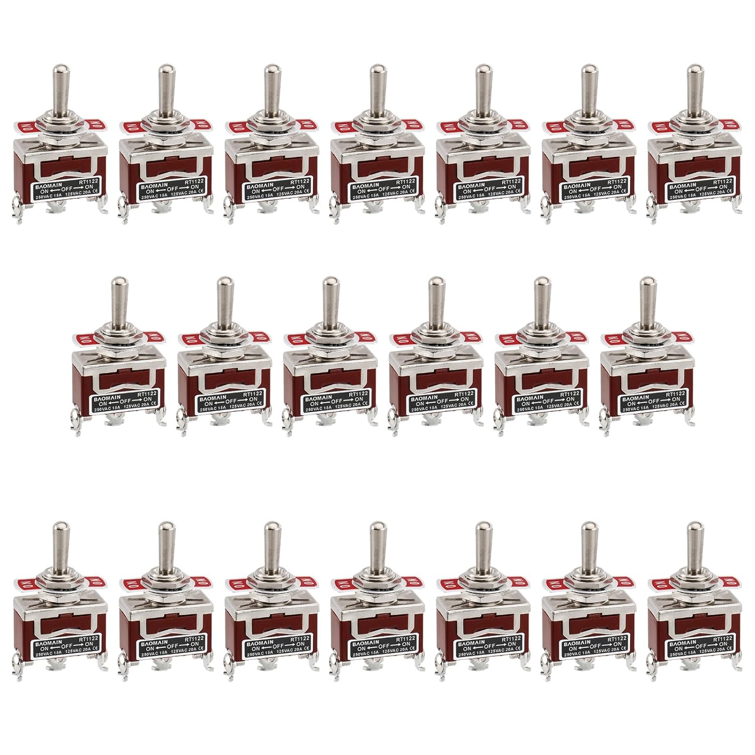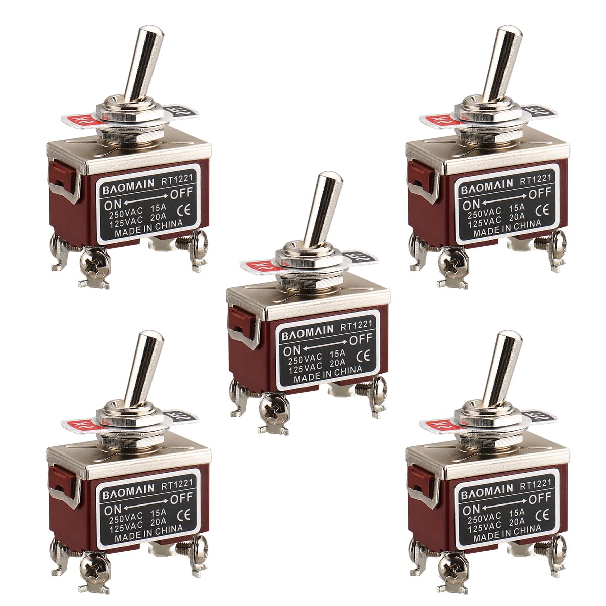 This DPST ON-OFF toggle switch is engineered for durability and reliability in automotive, marine, andelectrical systems. With a robust rating of 15A at 250V AC, it efficiently controls circuits in cars, boats, and other 250V applications. With an electrical life of 10,000 cycles, this toggle switch ensures long-term performance. It operates smoothly across a wide temperature range (-25°C to 85°C) and meets stringent electrical standards, including a contact resistance of ≤15mΩ and insulation resistance of ≥100MΩ at 500V DC.The dielectric strength withstands 1000V AC for 1 minute, ensuring safety and reliability. Ideal for DIY enthusiasts and professionals, this switch offers easy installation with its standard 4-pin design and clear ON-OFF functionality. Perfect for upgrading household appliances, controlling industrial equipment, or powering electronic projects, this toggle switch delivers consistent performance without compromise.