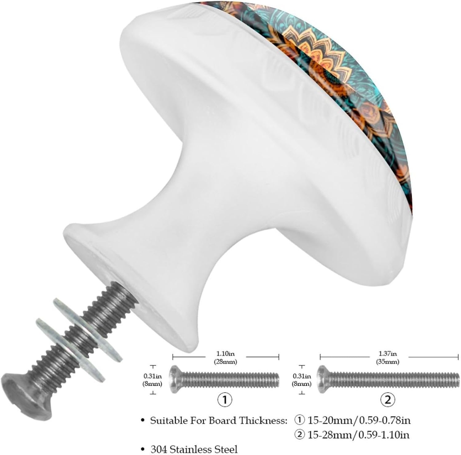 Upgrade your home decor with LORVIES Decorative Cabinet Knobs, Drawer Knobs, Cabinet Pulls & Drawer Pulls.Make them part of your home decor!These cabinet hardware & furniture knobs are the perfect size for your cabinets and drawers.The elegant and unique design, featuring diverse decorative patterns, adds a touch of sophistication to your cabinets.Not only are these kitchen cabinet knobs & bathroom drawer knobs functional, but they also elevate the style of any space.Whether it's your living room, kitchen, bedroom, or bathroom, these dresser knobs, wardrobe knobs & cupboard knobs are versatile and complement various decor styles. Product Information Material: ABS, Glass, Stainless Steel, Paper Size: 1.37" (Length) x 0.66" (Width) x 1.1" (Height) Weight: 0.28 Pounds / 0.13KG Base Color: Black Shape: Round with pattern edge Package Include: 12 x Cabinet knobs, 24 x Screws (Short x 12: 1.1" & Long x 12: 1.37") Notice ! ! ! Please measure and confirm the size of cabinet knobs & drawer knobs you need before purchasing. Please be careful when drilling holes. Manual measurements may be slightly inaccurate. Because of each computer display different colors may be related to physical and picture, hope to understand. LORVIES Service Provide you with a worry-free shopping, thank you! Any problems, please feel free to find up to us, we will try our best to help you solve your problems. Customer service time: Monday to Friday (9.00am-6:00pm) (GMT+8)(Due to the time difference, please allow us 24 business hours to get back to you. Thank you!)