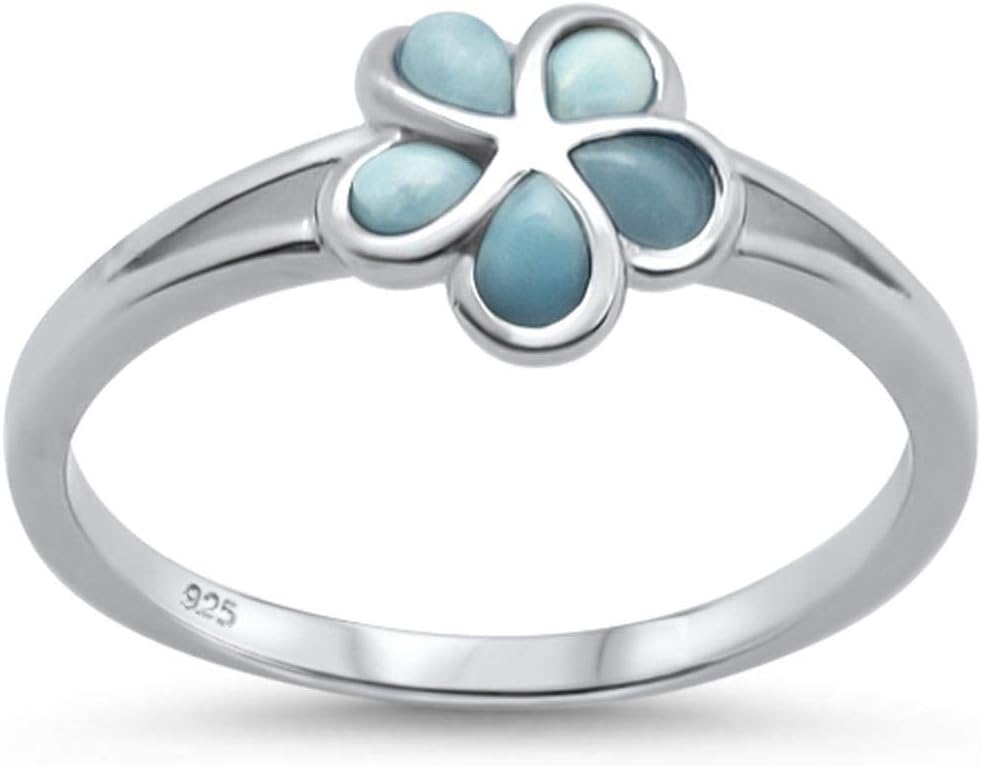 Natural Larimar Plumeria Design Ring Sterling Silver. Our silver jewelry is made from Sterling Silver. Sterling Silver is a mixture of high-quality 92.5% or higher pure