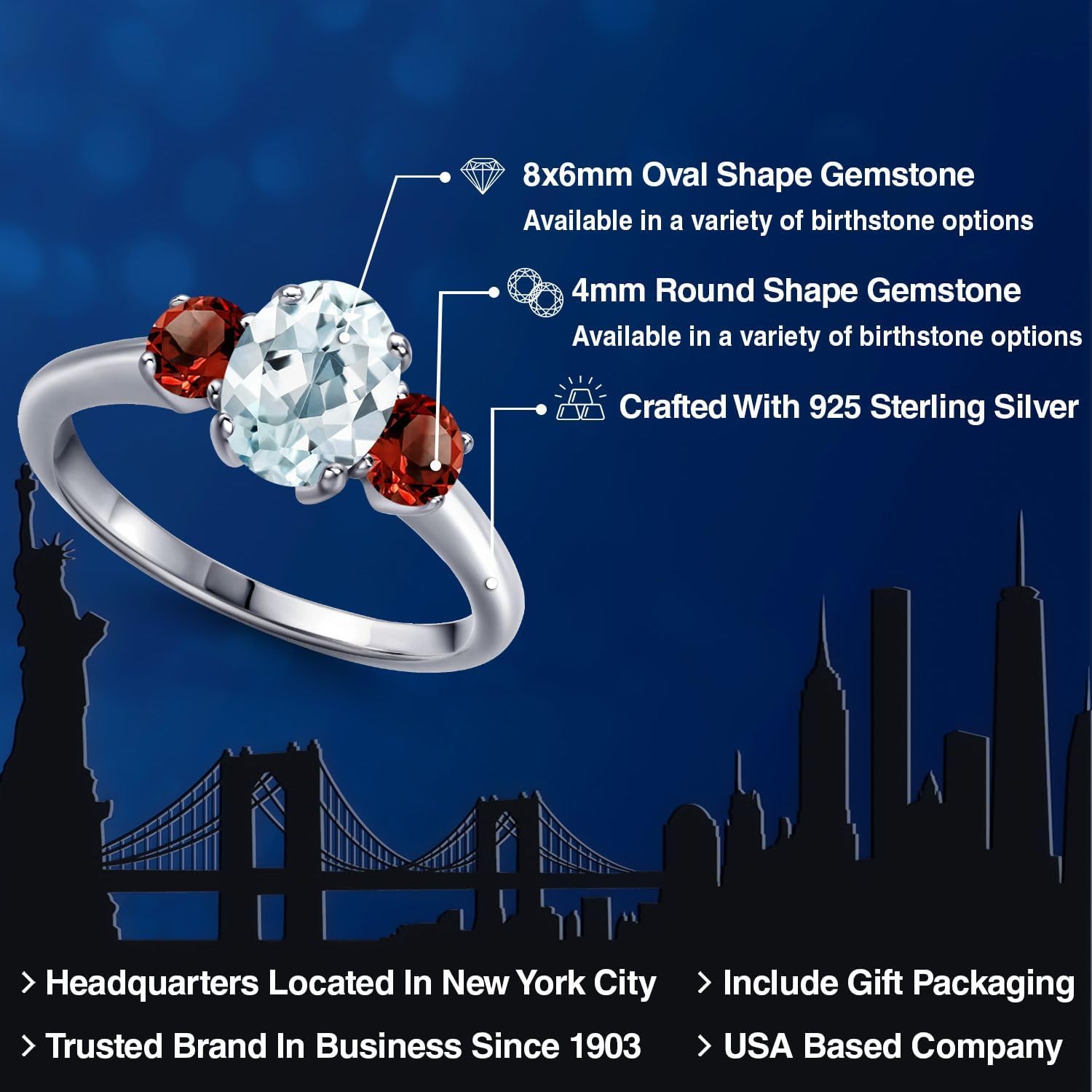 | Gem Type | Aquamarine, Garnet |