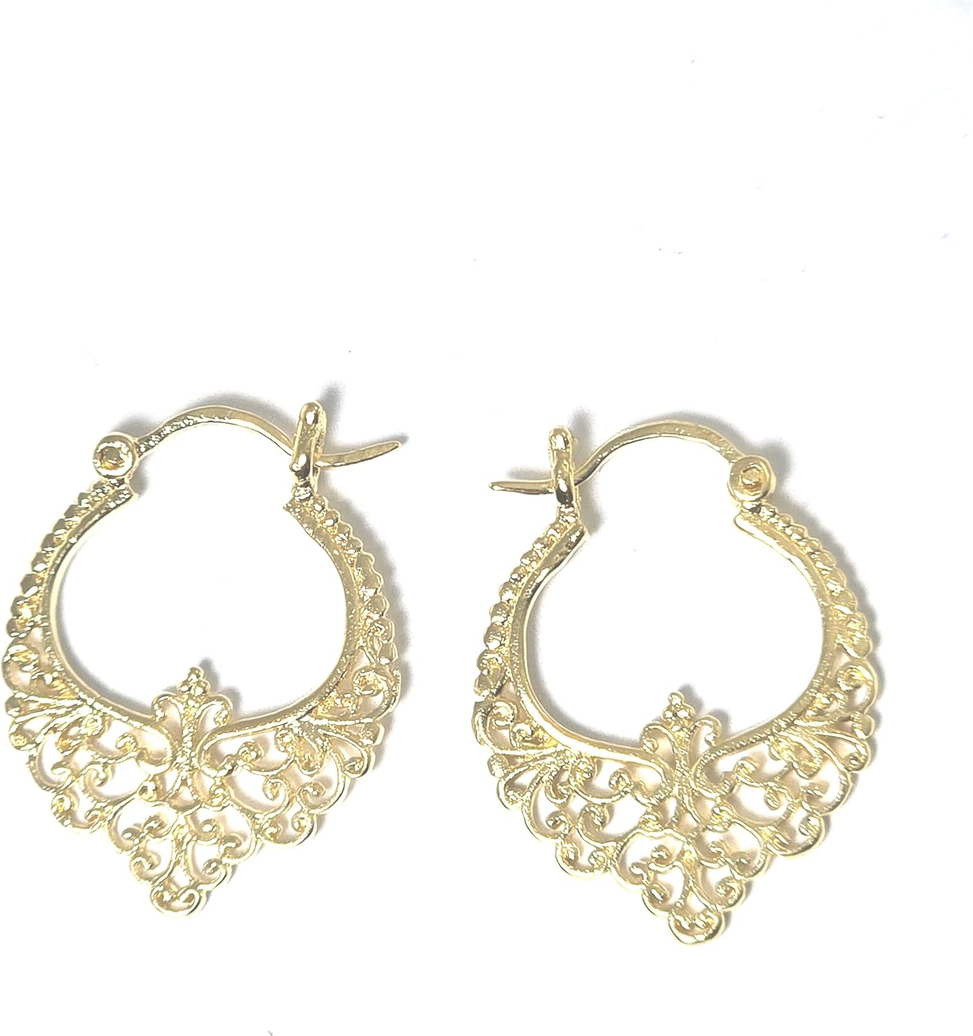 Filigree gold hoop earrings, Gold plated 14k gold, gypsy hoop earrings, ethnic filigree earring, Gold bohemian jewelry for women. Gorgeous, gold plated earrings with a spiraling filigree design. These unique, Indian style, handmade earrings are part of my ethnic jewelry collection. These beautiful and stylish ethnic earrings will become your favorite accessory for every occasion. These bohemian earrings are perfect for everyday and evening wear. Whether you are buying them for yourself or looking for a gift for a wife, girlfriend, daughter or a friend. This design is flattering and stylish and will add charm and beauty to every outfit. Get these earrings for yourself or as a meaningful gift for someone special! ♥ Product details: Handmade earrings ♥ Measurements: Weight - 0.088 oz (2.5 g.) measurements - 0.70" X 0.9" (1.8 X 2.3 cm) ♥ Materials: Brass coated with 14k gold ♥ More info: All my jewelry is carefully wrapped and shipped in a lovely gift box, ready to be given as a gift. ♥ Feel free to contact me with any question! Lianie