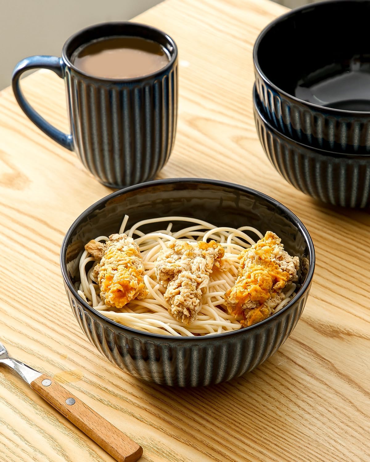Navy Blue Butter Dish, Salad Bowl Set of 4