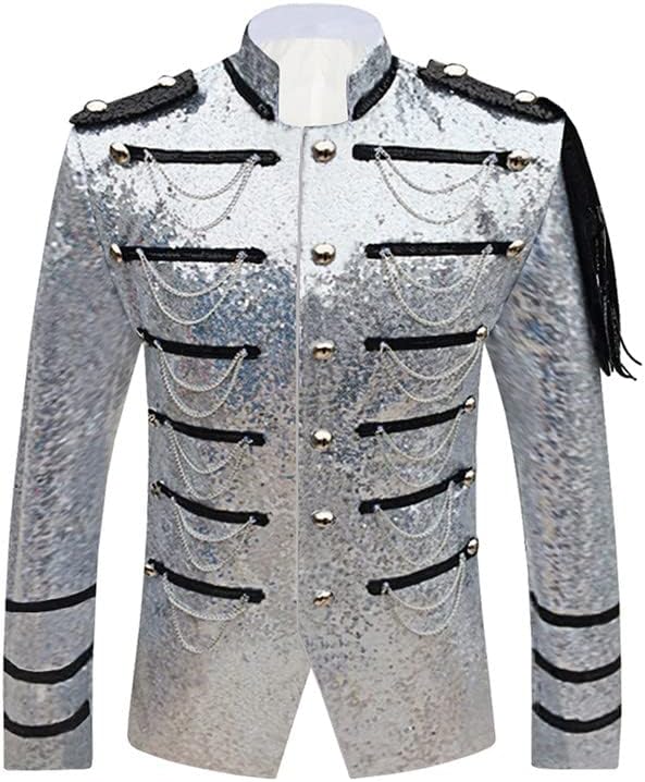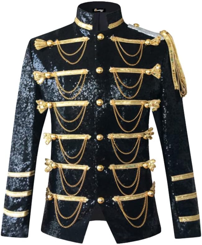 Welcome to WAIDFU StoreMen's Luxury Suit Stylish Military Uniform Blazers Party Prom Vintage Jackets Tops Blazer Size Information *Size: S-----Shoulder:45cm/17.7"-----Bust:104cm/40.9"-----Sleeve:61.5cm/24.2"-----Length:71cm/28.0" *Size: M-----Shoulder:46.5cm/18.3"-----Bust:108cm/42.5"-----Sleeve:62.5cm/24.6"----Length:73cm/28.7" *Size: L-----Shoulder:48.5cm/19.1"-----Bust:112cm/44.1"-----Sleeve:63.5cm/25.0"-----Length:75cm/29.5" *Size: XL-----Shoulder:50cm/19.7"-----Bust:116cm/45.7"-----Sleeve:64.5cm/25.4"-----Length:77cm/30.3"*Size: XXL-----Shoulder:52cm/20.5"-----Bust:120cm/47.2"-----Sleeve:65.5cm/25.8"-----Length:78cm/30.7"*Size: 3XL-----Shoulder:54cm/21.3"-----Bust:124cm/48.8"-----Sleeve:65.5cm/25.8"-----Length:79cm/31.1"Package Included: 1* suit jacket1. Please allow 1-3cm differences due to manual measurement. 2. Please allow little color difference due to different computers' displayers, camera, or light environments.Garment Care: Dry Clean Recommended; Do not Bleach; Line Dry; Low Iron before you wear it If Necessary; Hang on the suit when you do not wear it.