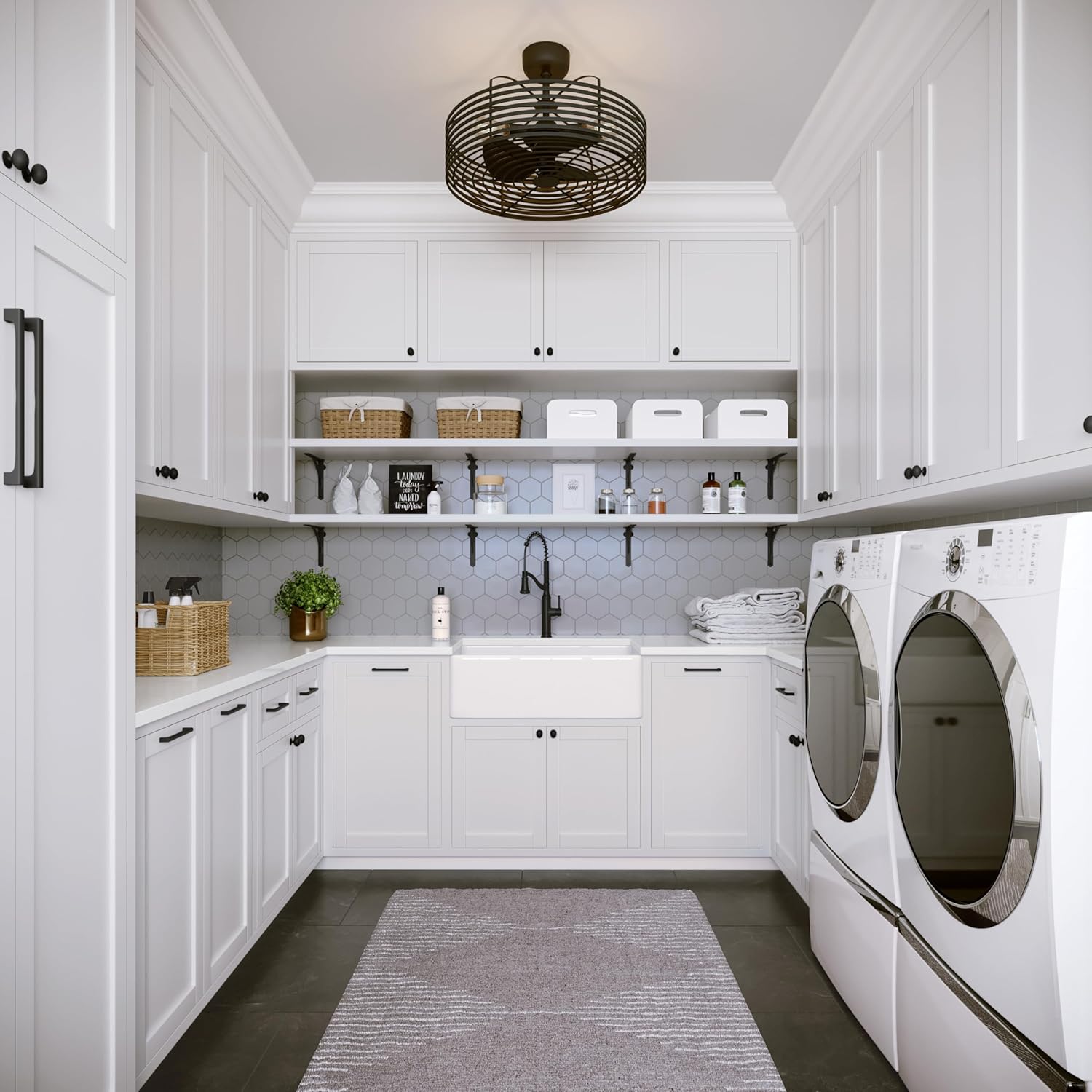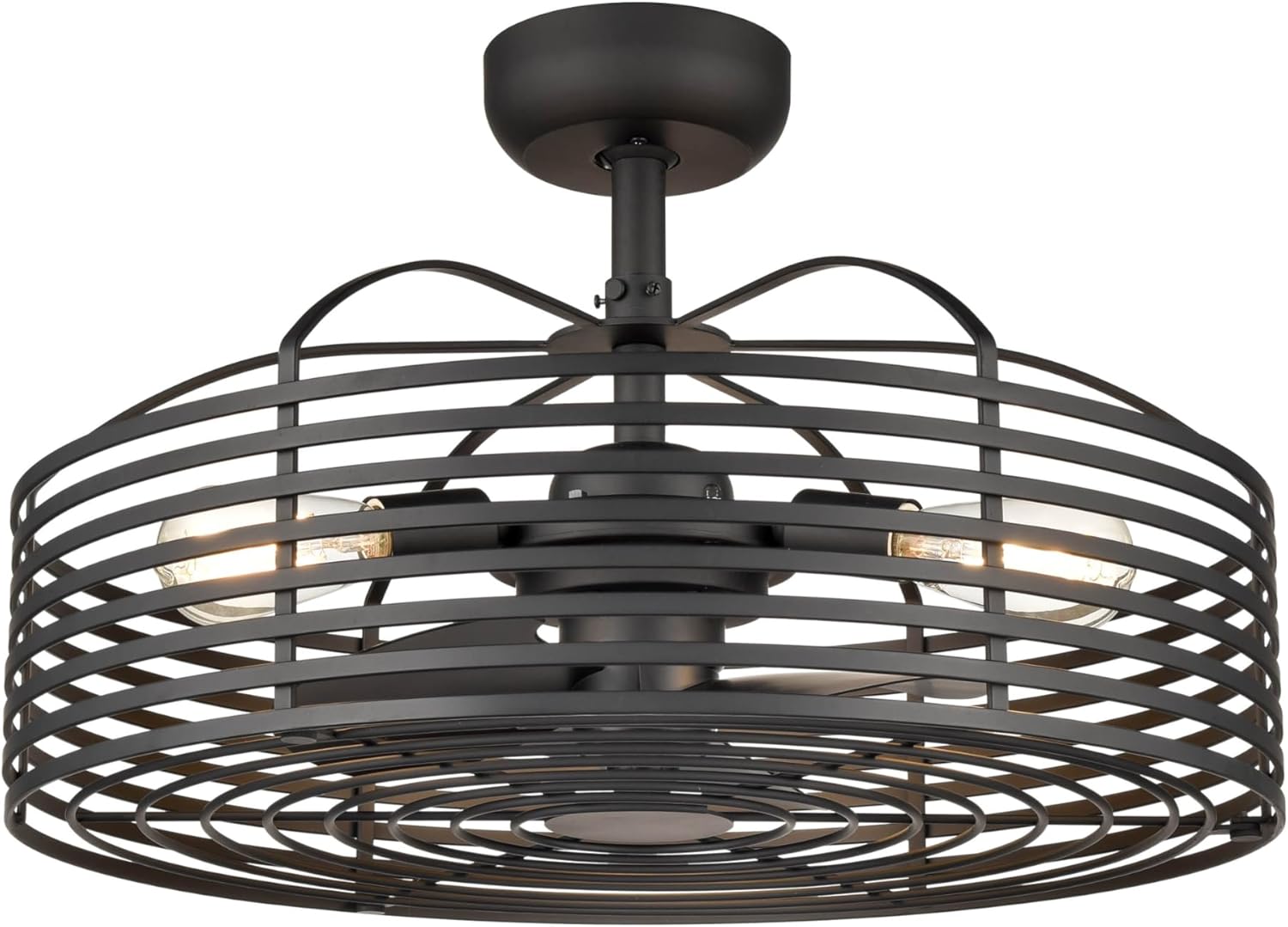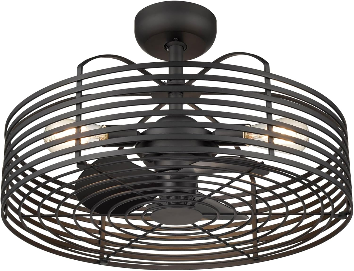 A thoroughly unique take on the industrial style caged ceiling fan, this fixture includes three lights and has a powder-coated black finish. Sized at 23-5/8” x 9-1/2“H, this fan provides the perfect designer touch for both in-town loft living and modern farmhouse chic.