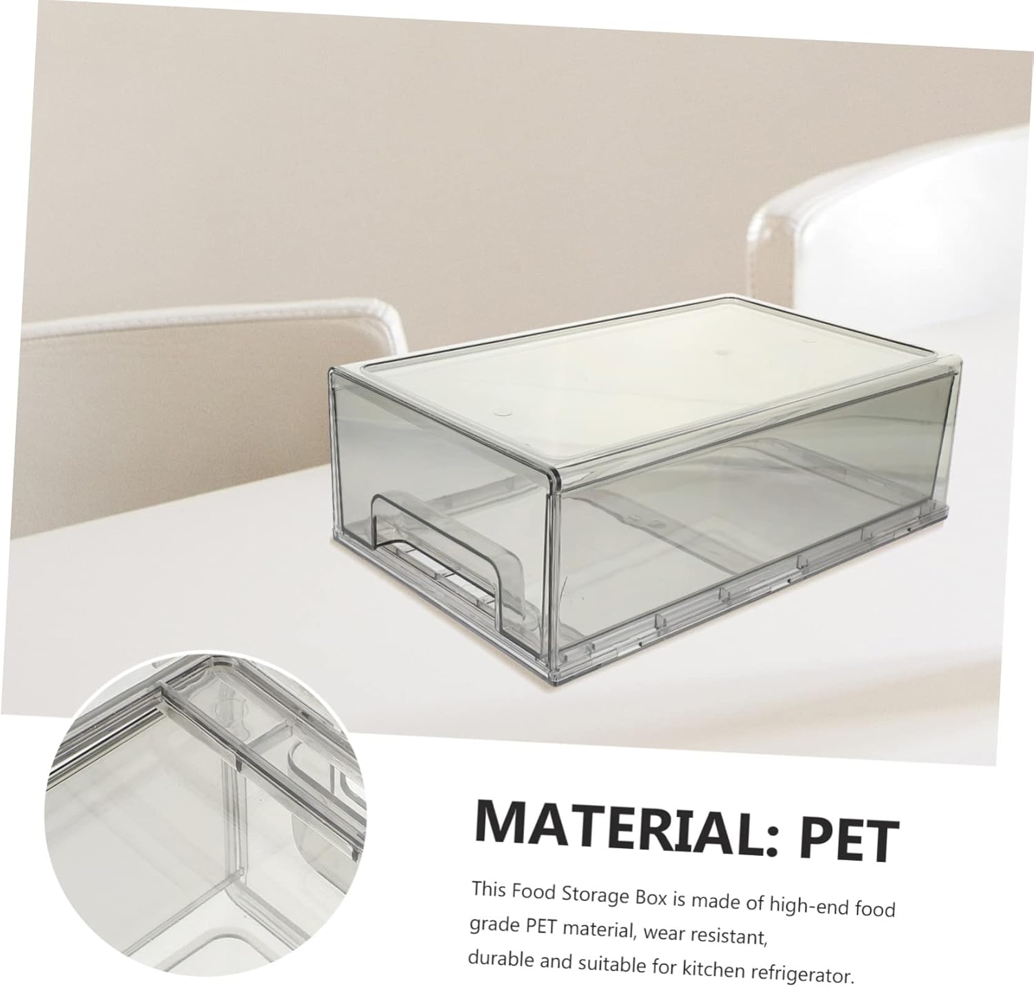 Package List 1 x Box Characteristics - Size: 33.80X21.00X11.00cm/13.28X8.25X4 refrigerator bin. -Color:Transparent Grey refrigerator preservation box -Material:PET stackable fridge bin - Used in fridge to keep fruits, vegetables, yogurts, cheese, milk, baby food or meat. Easy to clean, you can use it for a long time fridge crisper. - With Large capacity, the Refrigerator Storage Container can be used to store fruit, vegetables, food, etc, which is practical and refrigerator storage bin fridge organizer. - Applicable to hotel, home,restaurant, etc, keep your kitchen clean and tidy refrigerator organizing bin. - Stacking storage, space-saving, wonderful for you to use. Theclear design of the storage drawer allows you to see each of your groceries at all times to avoid food from going bad refrigerator drawer. - Practical PET material Storage Container for refrigerator and kitchen use, wear resistant and sturdy kitchen sealing box.Goods Informationfridge storage basket Made of PET material, safe and convenient for food storage.fridge With large capacity, it is sturdy and for fruits, vegetables and other food storage.refrigerator bin This product is a Refrigerator Storage Container for fruits and vegetables, which is very perfect for the storage of fruits, foods, vegetables, etc