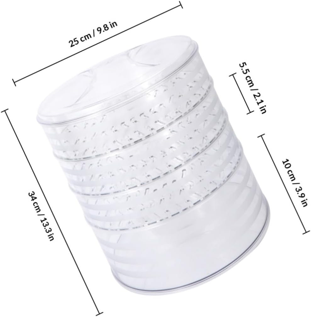Package Include 1Set x Food Cover Features -Product Info:Fresh food cover -Size: 34.00X25.00X26.00cm/13.36X9.82X10.22in -Material: Plastic -Color:Transparent -Suitable for kitchen use for heat preservation food tent with adjustable cover. -A perfect kitchen item for families Table Food Cover. -Protects food off-flavor and keeps food warm after cooking Creative Food Cover. -Multi-layer design, can hold much food when you do not finish eating and want to keep them fresh reusable food covers. -Including a cover, three short plate containers and a tall container food tent cover. -The effect of keeping is obvious dish covers for food.Goods Informationfood tent cover Transparent design gives you a clear view of the items inside it.dish covers for food Keep , , and other from your food with this food tent