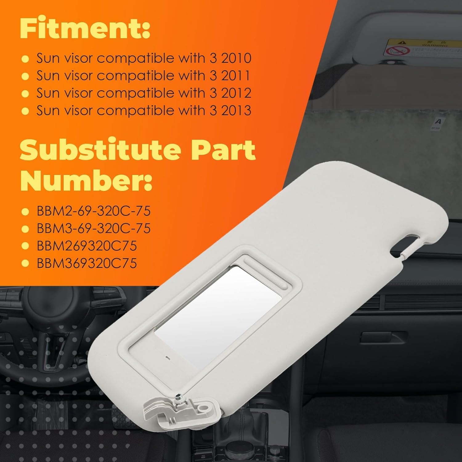 | Included Components | 1x Left driver side sun visor;1x right passenger side sun visor |