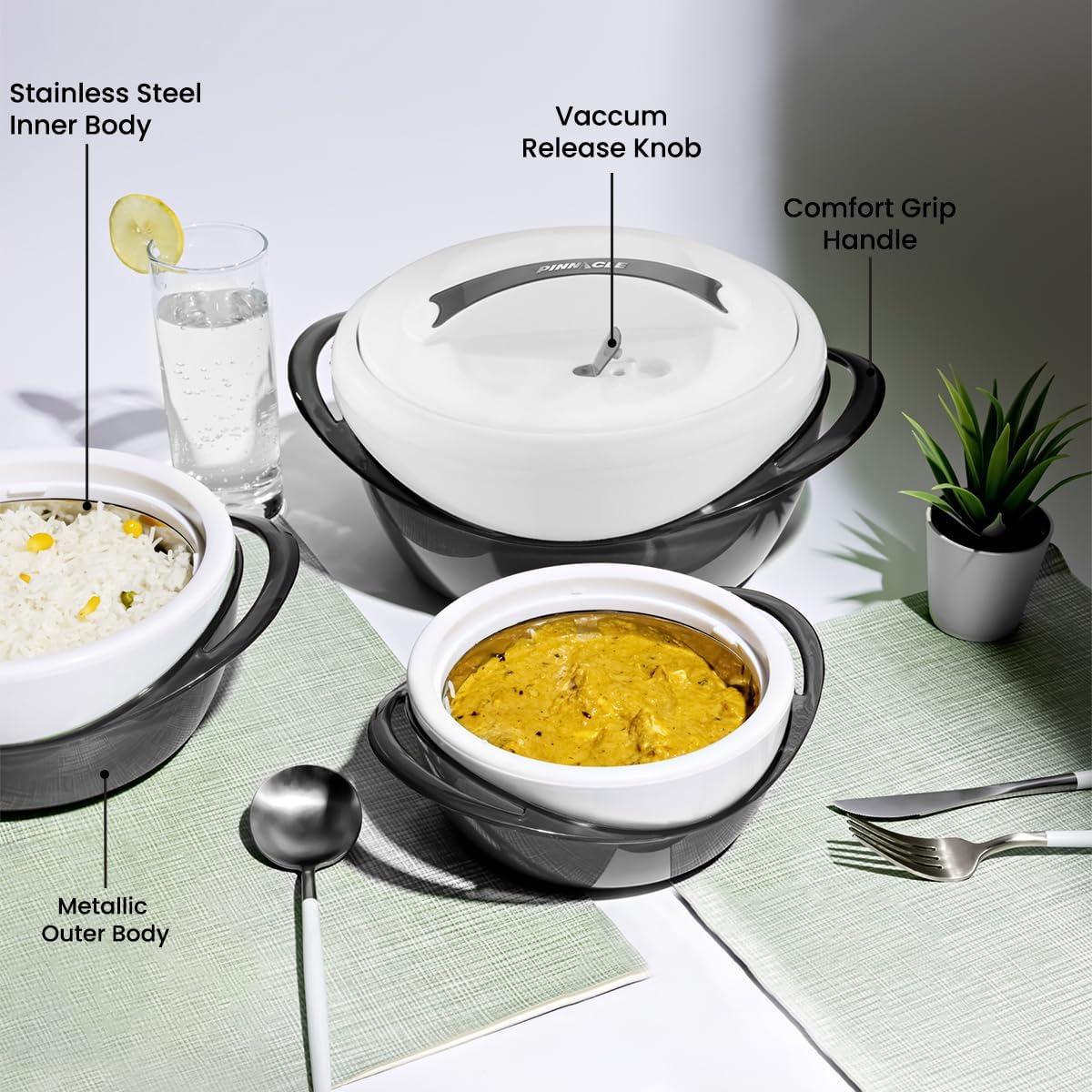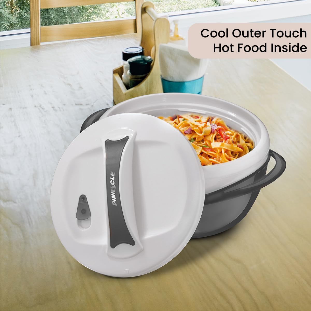 Product Details: Dish Size: 3.6 qt. Inner stainless steel construction & polyurethane insulation Locking lids Holds temperature up to 4-6-Hours Flexibility Between your errands and the kids’ school and extracurricular activities, making dinner is hard enough – and sometimes you may need to stagger meal times. ThermoDish is the perfect companion, keeping food cold or hot until it’s ready to serve. Easy Serving When preparing a meal for many individuals, everyone can enjoy the same hot or cold food at different times. Then serve right from this sleek dish! Avoid reheating and preserve more of the food’s essential nutrients.
