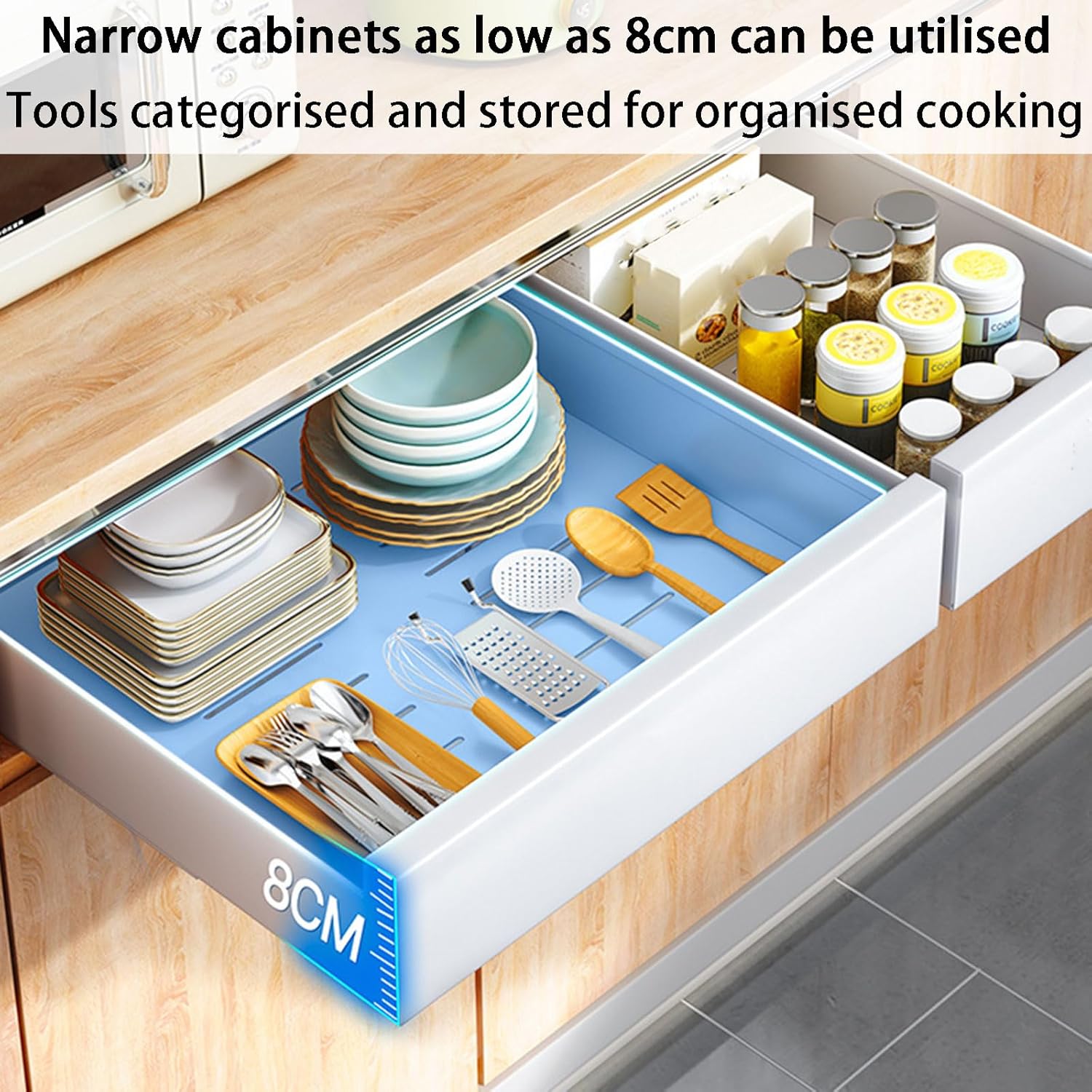 Are you looking to enhance organization in your kitchen or bathroom? Our pull-out cabinet organizer is the perfect solution for decluttering and maximizing storage space, allowing you to easily access your essentials without the need to bend over.**Pull-Out Cabinet Organizer with Handle**Crafted from premium carbon steel, this cabinet roll-out drawer is designed for durability and resistance to rust. Its heavy-duty construction is ideal for optimizing kitchen cabinet space, featuring a convenient slide-out mechanism that makes it perfect for areas with limited storage.**Effortless Peel and Stick Installation**Say goodbye to complicated installations! Our drawer utilizes a powerful nano film adhesive, allowing you to simply peel and stick it to your shelf without any measuring or drilling. This innovation makes kitchen organization a breeze.**Smooth and Silent Operation**Experience the convenience of our adhesive slide-out drawer, equipped with a tested damping guide rail. This ensures smooth and quiet sliding for up to 100,000 uses. With full extension capabilities, accessing items becomes effortless, enhancing your overall experience.**Perfect for Home Organizers**Transform your space with a customized setup where cabinets and shelves glide out for easy access. This pull-out drawer is perfect for storing pots, pans, lids, cans, baking sheets, spices, cookware, and even small appliances. It's an essential tool for keeping kitchens, cupboards, pantries, and under-sink areas tidy and organized.**Size Compatibility**Before making your purchase, please measure your cabinet dimensions. Refer to the size details in the product images to ensure your cabinet is approximately 3-5 centimeters larger than the pull-out storage rack for optimal fit.