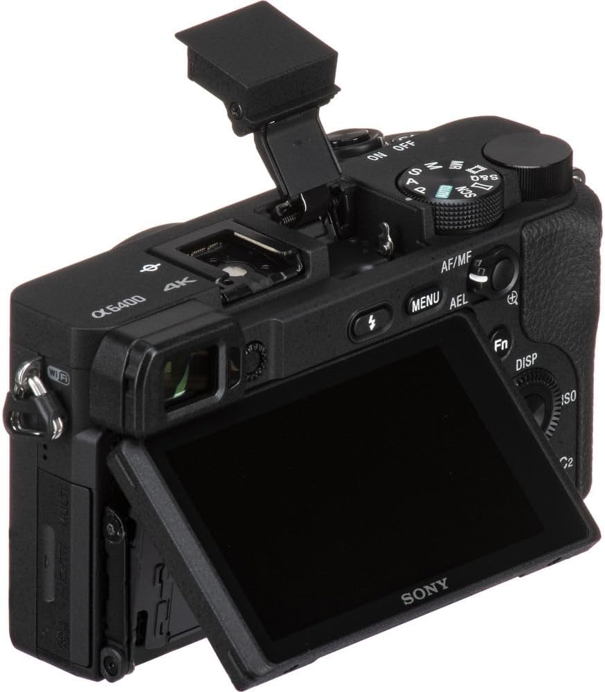 Designed for creators seeking exceptional performance in a portable form, the Sony a6400 combines a 24.2MP APS-C Exmor CMOS sensor with the powerful BIONZ X processor to deliver stunning image quality, impressive low-light capabilities, and a wide dynamic range. Capture fast-moving subjects effortlessly with the advanced 4D FOCUS system, featuring 425 phase-detection points and lightning-fast autofocus speeds of just 0.02 seconds. Real-Time Eye AF for both humans and animals ensures sharp focus, whether shooting stills or video. For videographers, the a6400 excels with UHD 4K recording, oversampled for exceptional detail, and professional-grade color control with S-Log2 and S-Log3 profiles. You can even extract high-resolution 8MP stills directly from 4K footage. The included 16-50mm f/3.5-5.6 II lens offers versatility with sharp, stabilized images across a range of focal lengths.Manufacturer Included Items:Sony a6400 Mirrorless CameraSony NP-FW50 Battery (1020mAh)Sony AC AdapterSony ALC-B1EM Body Cap for E-Mount CamerasMicro-USB CableShoulder StrapEyepiece CupAccessory Shoe CapSony E PZ 16-50mm f/3.5-5.6 OSS II Lens (Sony E Black)Sony ALC-F405S 40.5mm Front Lens CapSony ALC-R1EM Rear Lens CapBundle Items Include:Sony a6400 Mirrorless Camera with 16-50mm f/3.5-5.6 II Lens (Black)64GB Extreme PRO UHS-I SDXC Memory CardNP-FW50 Replacement Padded Camera BagNP-FW50 ChargerFlexible TripodDeluxe Cleaning KitHDMI Micro CableCamera Hand StrapMemory Card WalletMemory Card ReaderCap Keeper