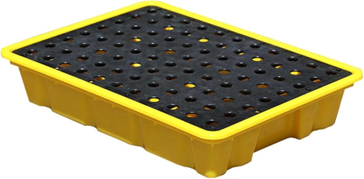 FeaturesThe nut-type sewage outlet design ensures liquid sealing and no leakage, making sewage treatment more convenientSpill platform can be combined freely, You can splice multiple platform together according to your own needs, convenient to useSpecificationName: Spill Platform/Spill Containment Tray/Polyethylene Pallet/Grid Pads/Plastic PalletsMaterial: PolyethyleneColor: Yellow + BlackSize: 33x33x5.8CM/13x13x2.29in , 49x33x9.5CM/19.3x13x3.75in , Function: Leakproof/Anti-slip/VentilationApplicable scene: Home/Warehouse/Factory/Workshop/Kitchen/Outdoor/Industrial ParksPacking list1 x Spill Containment PalletTipsWe sell pallet, the others are exhibits