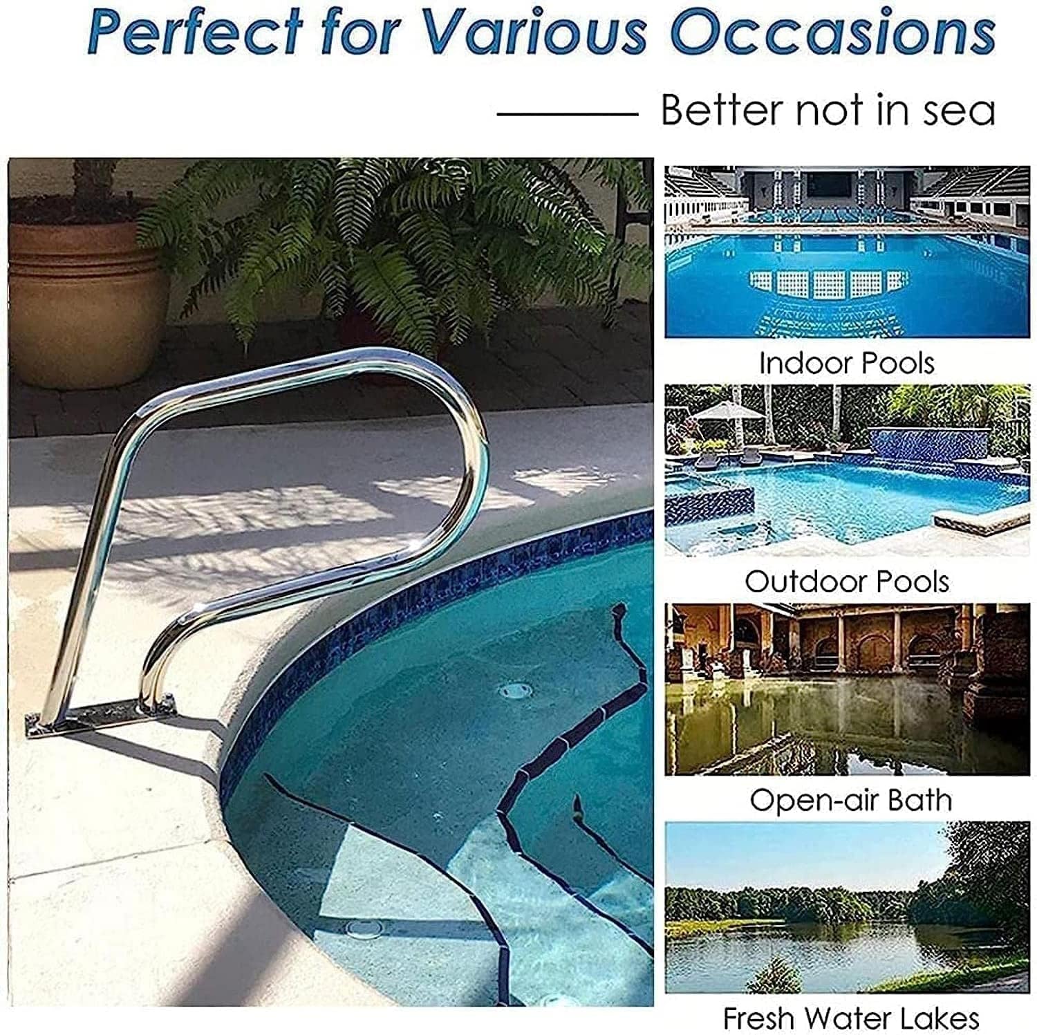 Model Number:XBNA1356 Our pool handrails are made of 304 stainless steel, durable, waterproof and rust-proof, it is your best choice, don't hesitate! GIVE AWAY 4FT NYLON GRIP COVER : 4ft (122x12cm) (L x H); 90ft nylon handle cover ensures a comfortable surface to hold while providing excellent grip. It protects hands from the common dangers of burns and discomfort. Product name: stairs/pool railing This all-stainless steel handrail is very suitable for swimming pools of any size. The guide rail has a small footprint and is designed to take up minimal deck space while ensuring safe and firm support for water in and out. The stainless steel design ensures that your handrails will not rust and stain in the next few years. Product specifications: --Material: 304 stainless steel --Size: 81×10.5×57cm (31.9"×4.1"×22.4") --Color: silver --Surface: smooth and polished --Product List: 1×Swimming Pool Handrail Product features: --High-quality 304 stainless steel material, sturdy and durable. --Humanized curves, according to the principle of fluid dynamics, to decorate your pool well. --Easy to grasp, perfect and firm fit, help in and out of the pool, br/ing a sense of security. --Simple bolt installation, easy installation. Maintenance: --When the stainless steel handrail is stained with dust, wipe it directly with a dry cloth. Note: --The fixed swimming pool ladder is very easy to install. We recommend that you use a hammer drill to drill holes in the concrete. After-sales service: We provide first-class quality and best service. If you are not satisfied after receiving the package, we will provide you with a satisfactory solution! If you have any questions, please feel free to contact us!