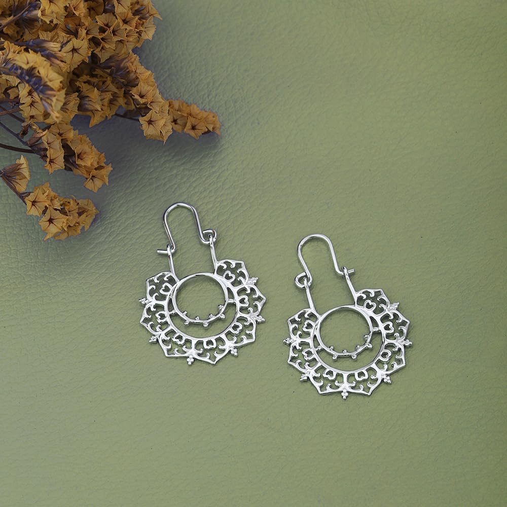 Showcasing intricate designing and craftsmanship, these fancy geometric Bali Hoop Earrings offer a stunning and captivating look. Created from fine Sterling Silver, these eye-catching hoops are a must-have accessory to be worn on any occasion. They are enhanced with rhodium plating for a more durable, shiny and plush look.