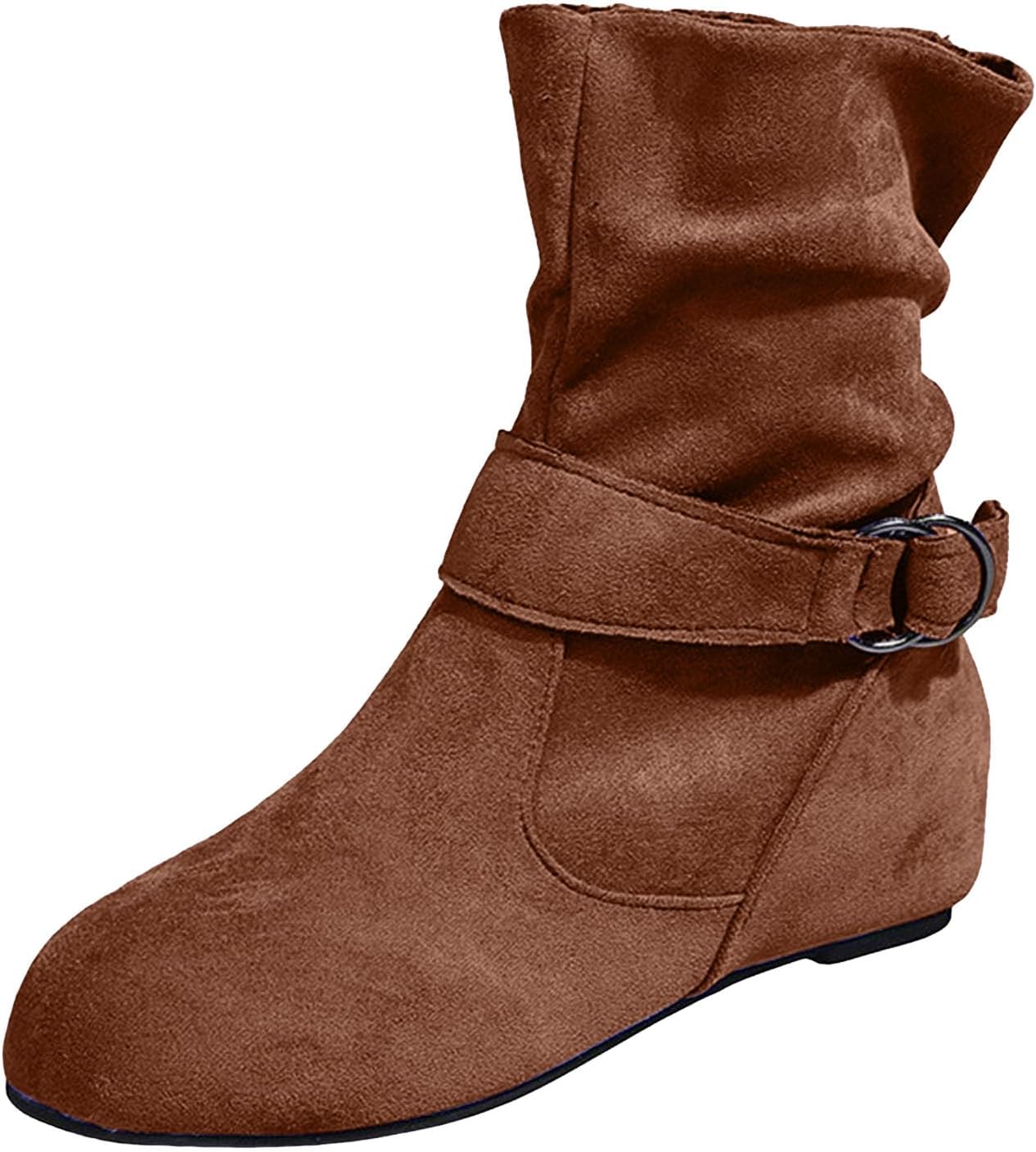 Women's Slouch Flat Mid Calf Boots Socks Fashion Round Toe Suede Booties Wide Width Flats Dressy Comfort Casual Riding Walking Boots for Fall Winter Non-Slip Wide Calf Short Booties